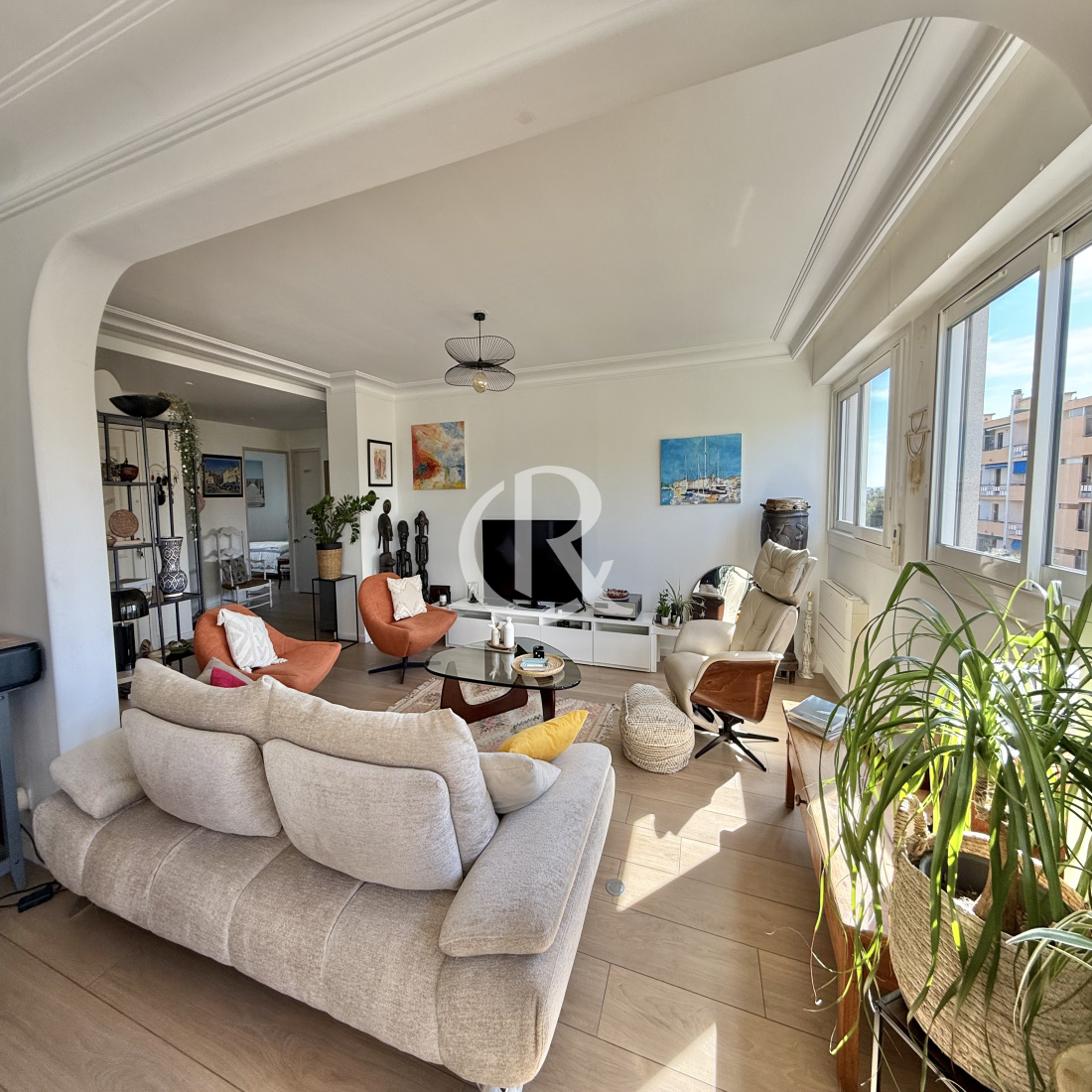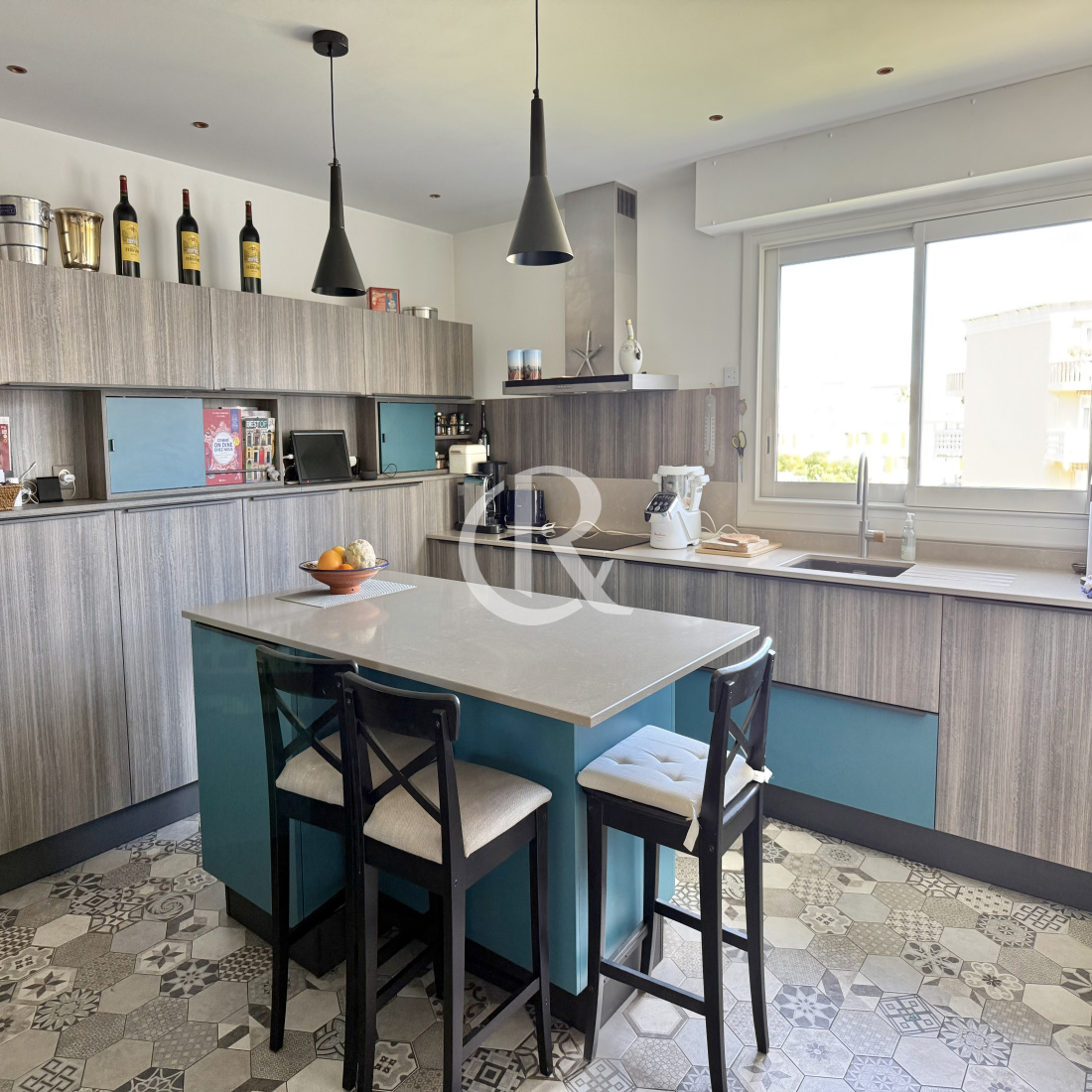 Situé au dernier étage d’un immeuble sécurisé avec ascenseur, cet appartement traversant de 146,64 m² séduit par ses espaces lumineux et son excellent état d’entretien. L’espace de vie, d’une superficie de plus de 60 m², offre une ambiance élégante et conviviale, sublimée par une cuisine contemporaine entièrement équipée avec cellier attenant. La partie nuit accueille trois chambres confortables, deux salles d’eau, un dressing sur mesure ainsi que de nombreux rangements. Les finitions soignées, la luminosité omniprésente et la proximité immédiate des commodités confèrent à ce bien un confort de vie agréable. Un grand garage en sous-sol complète cet ensemble.
